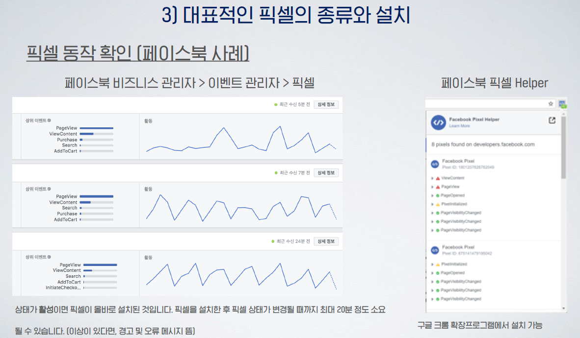 - 페이스북 애널리틱스는 픽셀 데이터 기반으로 간편