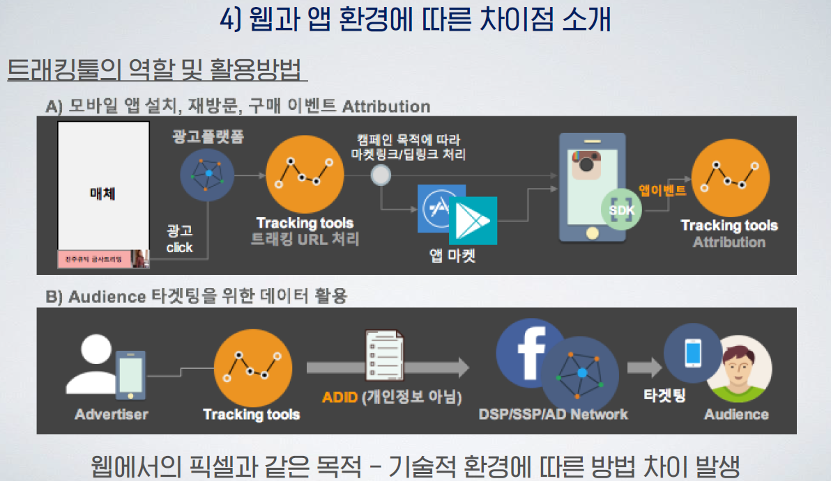 - 마케팅 성과 분석시 App 환경에 맞는 별도의 트래킹 툴 필요