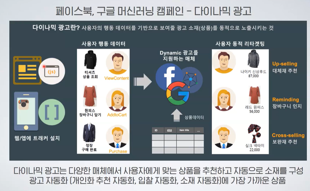 - 다이나믹 광고는 다양한 매체에서 사용자에게 맞는 상품을 추천하고 자동으로 소재를 구성