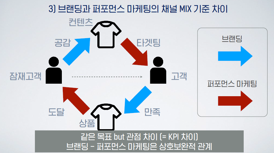 * 브랜딩과 퍼포먼스 마케팅 채널 믹스 차이