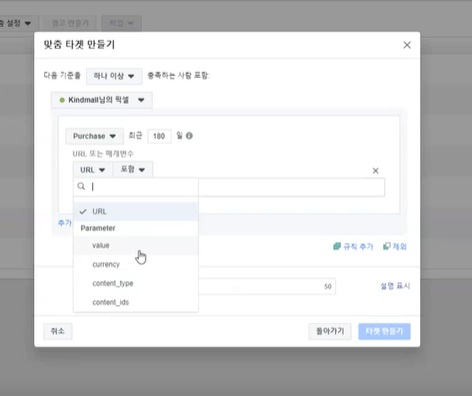 - 자산 > 타겟 > 타겟 만들기 > 맞춤/유사 타겟 고르기