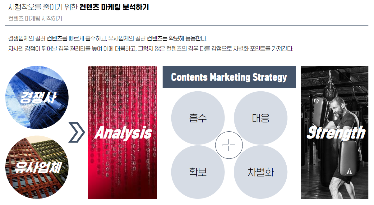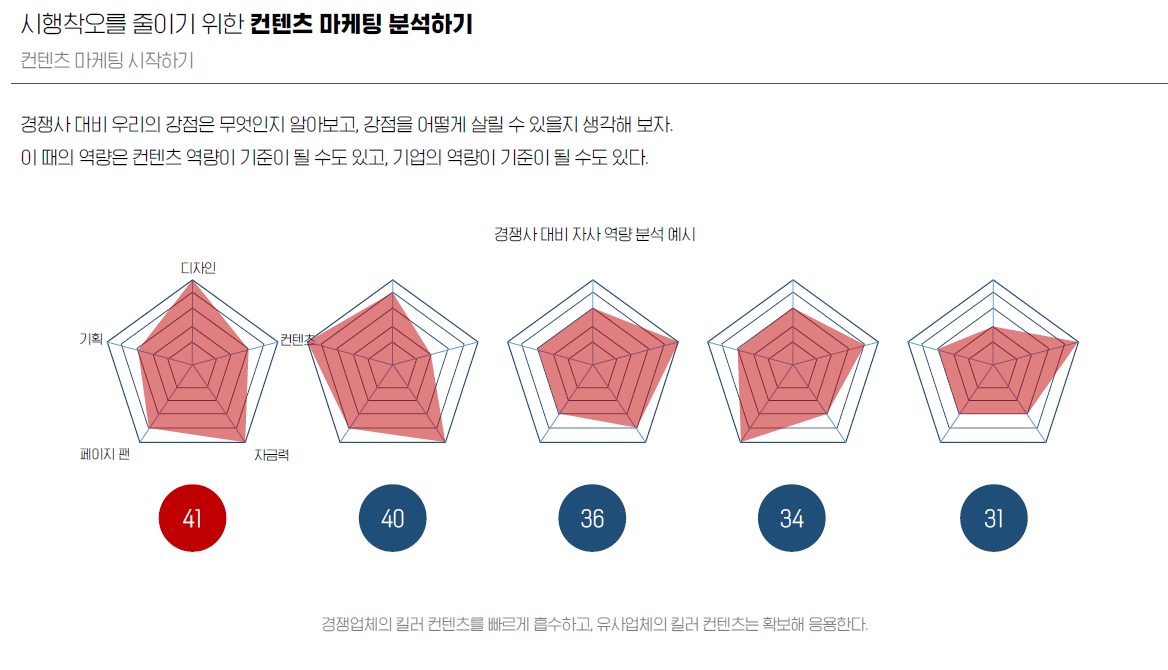 : 업계의 콘텐츠 유형이 편향되어 있다면 동종업계 또는 유사업계를 벤치마킹