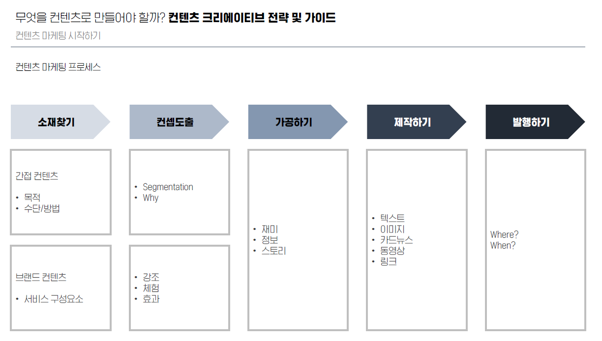 - 콘텐츠 마케팅 프로세스에 따른 콘텐츠 소재